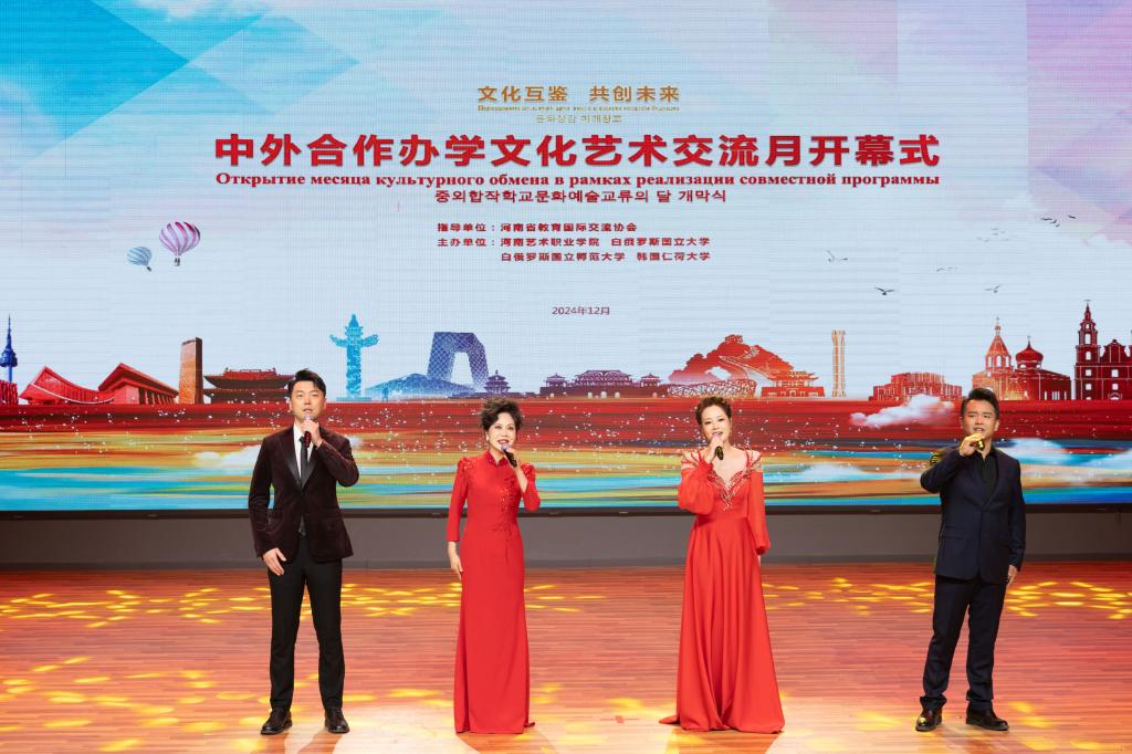 河南艺术职业学院中外合作办学文化艺术交流月于12月4日拉开帷幕。开幕式上,河南艺术职业学院与白俄罗斯国立师范大学的师生们共同呈现了一场精彩绝伦的文艺演出。中国传统戏曲、现代歌舞与白俄罗斯民族歌曲交相辉映,展现了不同文化背景下的艺术魅力,让现场观众领略到了跨越国界的艺术之美。