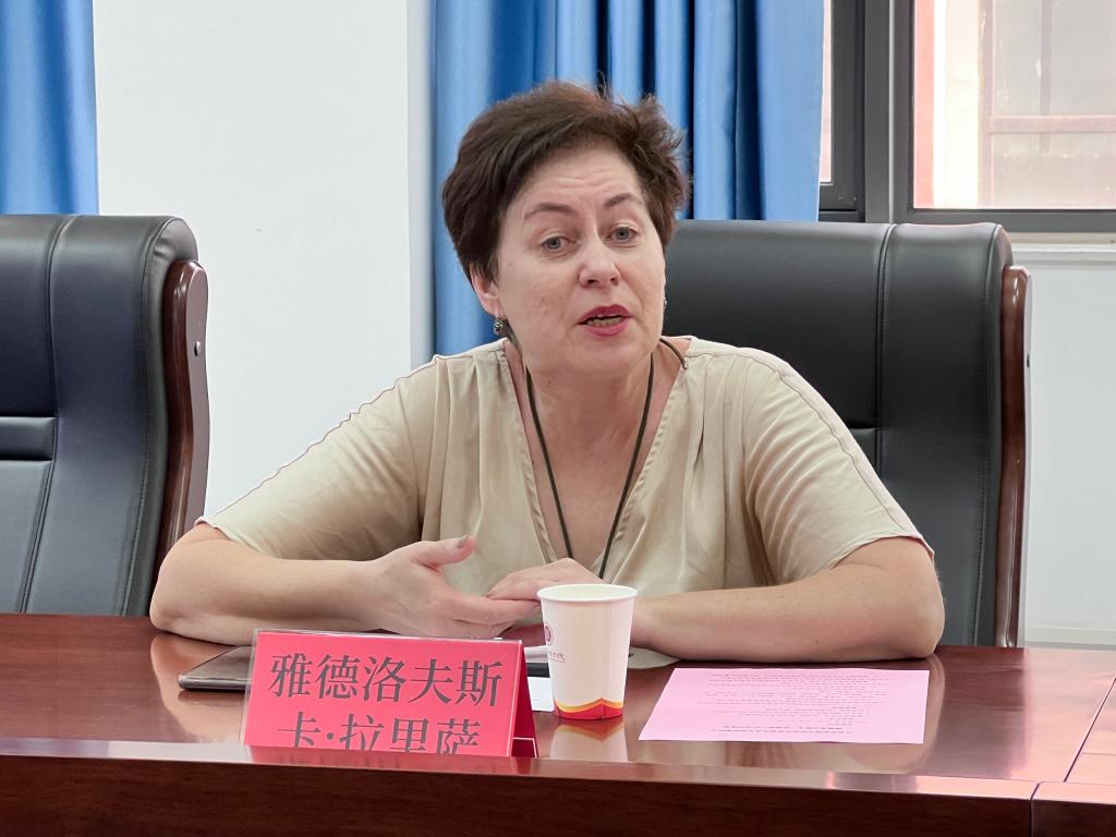 雅德洛夫斯卡·拉里萨副院长介绍了白俄罗斯国立师范大学在合作办学方面及我校在白留学生等相关情况。