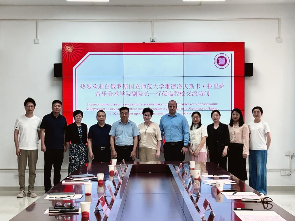 2025年5月15日上午10时,白俄罗斯国立师范大学音乐美术学院副院长雅德洛夫斯卡·拉里萨一行莅临河南艺术职业学院访问交流。我校对外合作部主任王松林、音乐学院院长郑志强、科研外事处处长陈丹、对外合作部副主任李静等双方相关人员参加会议。